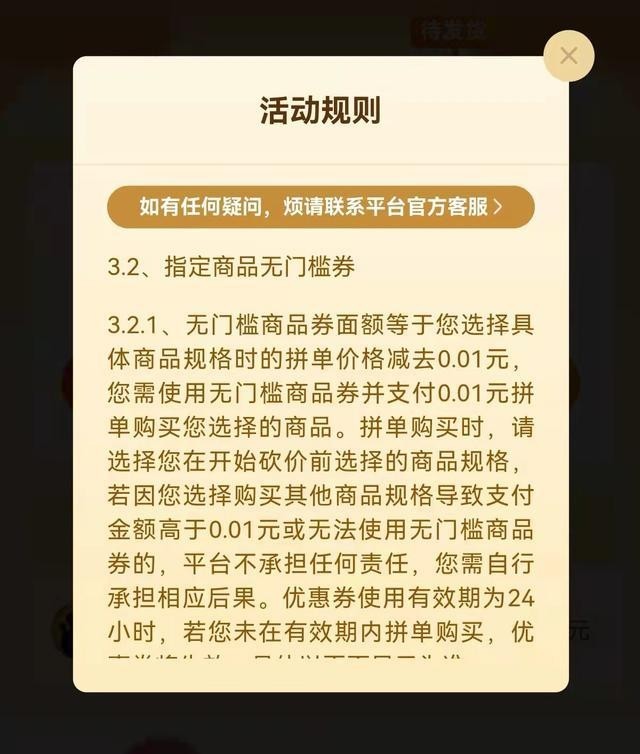 同时,砍价成功的页面显示,他获得了一张无门槛商品券,需要支付0.01元才能购买这款手机。“在直播间里的两个小时,一直显示都是砍价不成功。我好奇的是,现在究竟是我自己砍价成功了,还是拼多多官方关注到了此事,刻意‘送’了我一台手机?