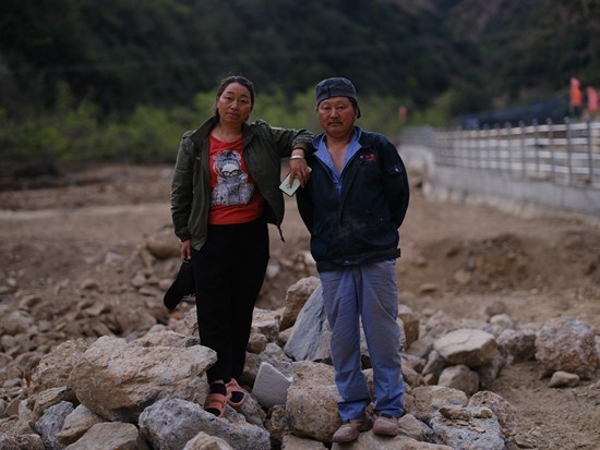 3月15日,木里县项脚蒙古族乡项脚村,王沙习、王祝马夫妇在泥石流后重建家园。