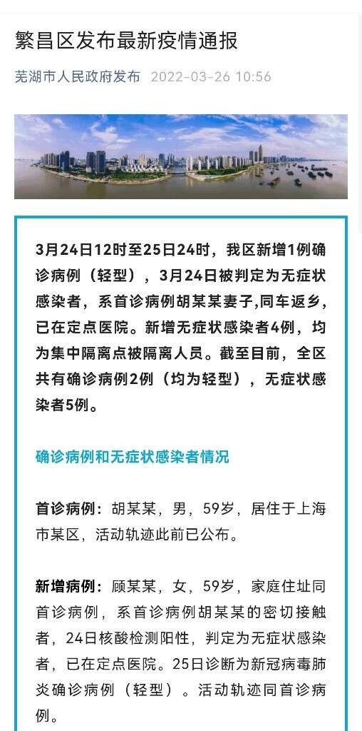 公安机关于2022年3月26日对胡某树立案侦查,芜湖市繁昌区人民检察院也已提前介入该案件。根据当地疫情防控工作指挥部此前公布的流调轨迹,3月23日,胡某树下了高速进行核酸检测后进入城区,先后在餐馆、家中、区行政服务中心、两处售楼部、亲戚家、村卫生室等处活动。据悉,胡某树是本轮繁昌区及芜湖市疫情的首例确诊病例。记者梳理3月24日至今当地新冠感染者流调情况后发现,芜湖全市的确诊病例和无症状感染者中,相当一部分与胡某树有过交集。