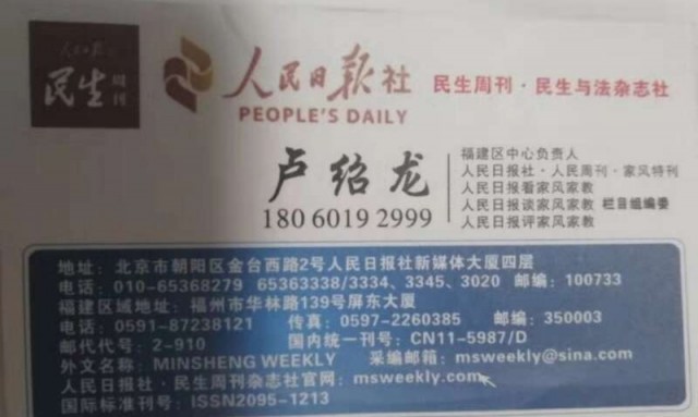 任本桃告诉中青报·中青网记者,她因打一场医疗官司而在媒体群里认识了自称人民日报《民生周刊》记者的卢绍龙。2018年7月,她带了投诉材料应约到福建省龙岩市和卢见面,希望能得到他的帮助。当时卢向她出示了带有二维码的记者证,并给她一张印有“人民日报社《民生周刊》杂志福建区中心负责人”头衔的名片,还介绍了当地朋友和她见面,所以“对他的身份及说法我深信不疑”。任本桃说。