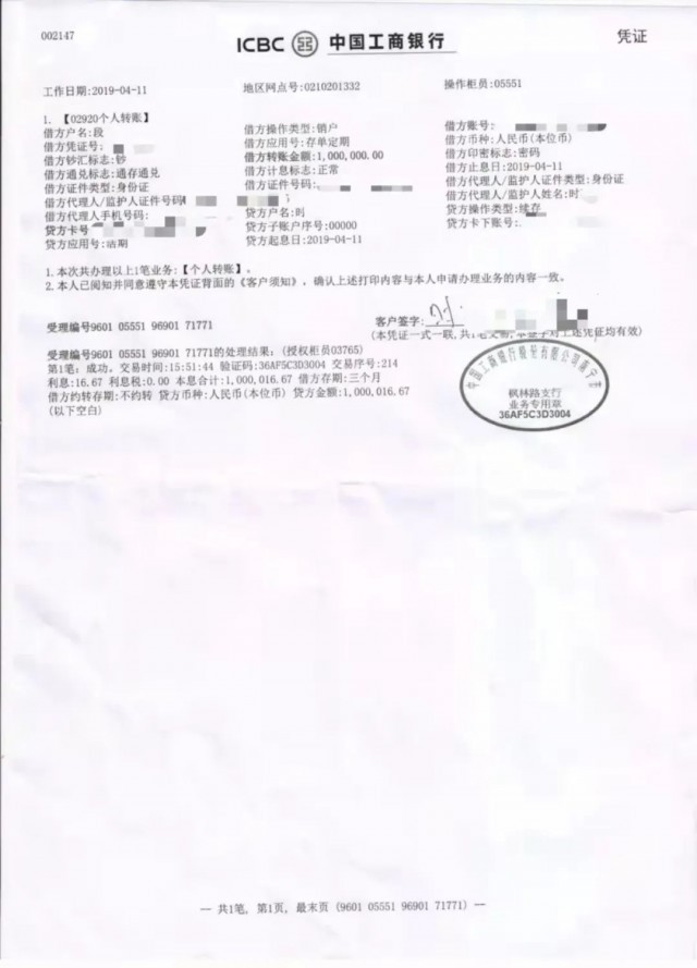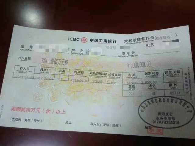 储户段女士的存单。图/受访者提供