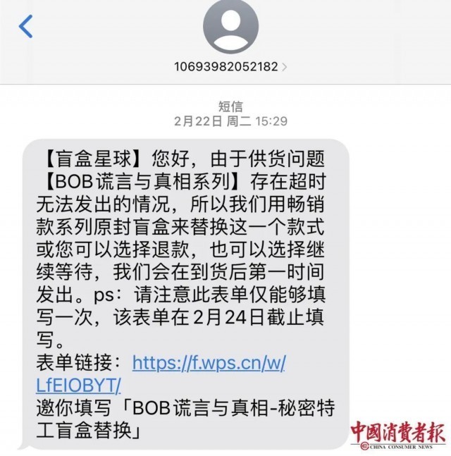 张先生却收到盲盒星球的短信