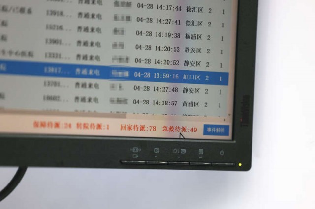 4月28日,上海市徐汇区,上海市医疗急救中心的调度系统显示,当日14时49分,系统中“急救待派”任务49个,“回家待派”78个。由于120救护车运力受到限制,许多急救任务无法派出,病人要一直等待救护车的到来。而疫情期间,由于交通工具不足,病人从医院回家也需要乘120救护车,更加剧了救护车运力的紧张。中青报·中青网记者 李强/摄