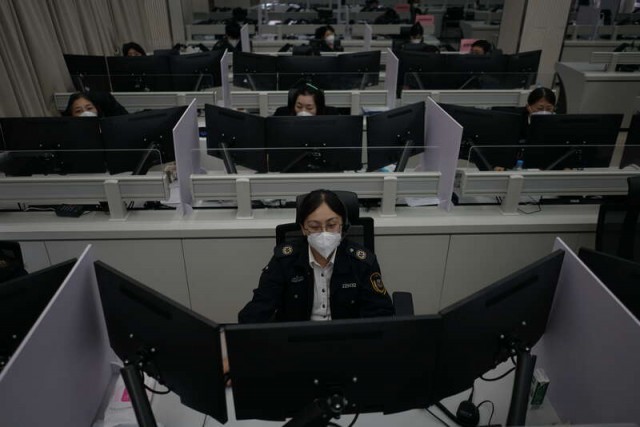 4月28日,上海市徐汇区,上海市医疗急救中心的调度中心大厅。中青报·中青网记者 李强/摄