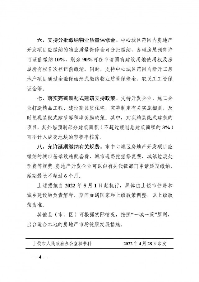 4月30日,江西省上饶市人民政府办公室印发《上饶市关于有效应对疫情不利影响促进中心城区房地产市场健康发展的若干措施的通知》(简称《通知》)。