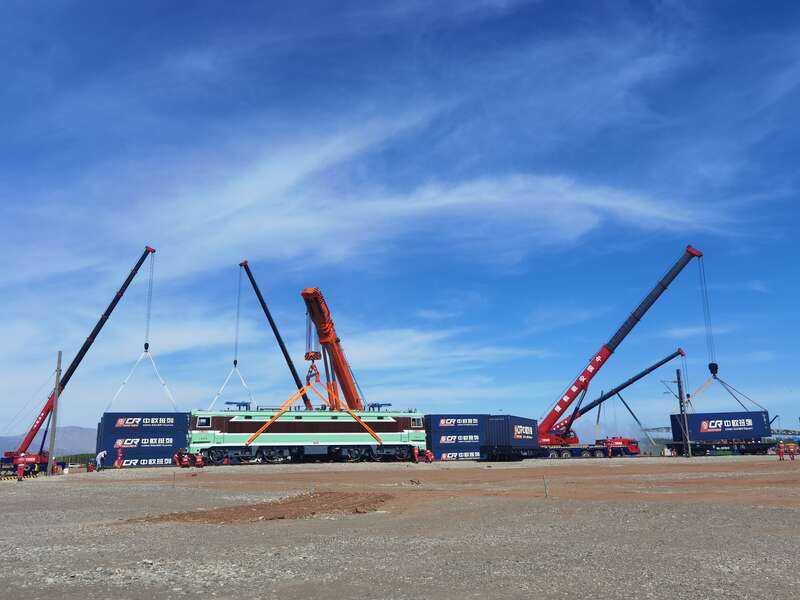 模拟中欧班列出现倾覆,救援队正在进行救援。受访者供图。