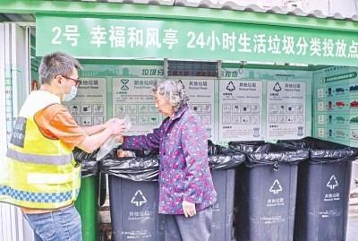 市城管委垃圾分类中心副主任张文伟介绍,今年,城管部门大力推动生活垃圾分类示范点创建工作,在社区实行“撤桶并点”和定时定点投放。同时,在居民垃圾投放高峰时段配备桶边督导人员,对居民投放行为进行宣传、引导、劝导,让居民了解垃圾分类,正确投放生活垃圾,逐步养成良好的分类习惯和践行绿色低碳生活方式。
