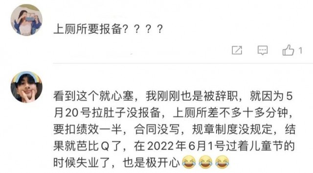 不少网友就上厕所该不该报备,表达了自己的看法。有网友认为“这样不太合理”: