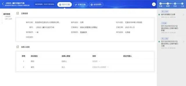 5月23日,该案已获石家庄市中级人民法院立案。