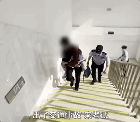 再由现场民警背至五楼的考点