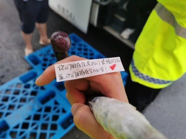 保安大叔手中举牌暖心送别