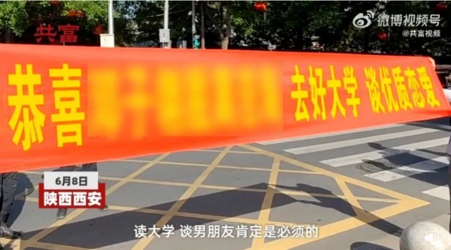 在考场外拉起横幅: