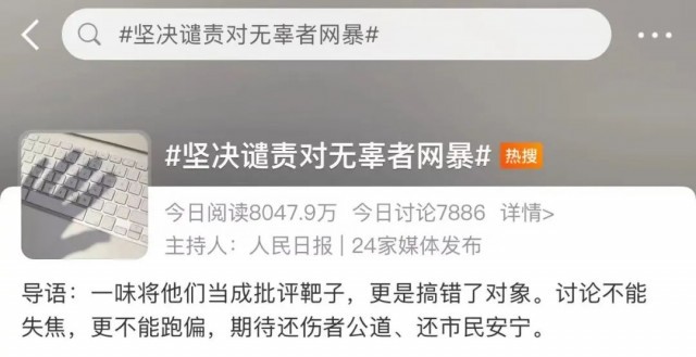 红星新闻在评论中表示:面对一起恶性暴力事件,愤怒是一种本能,但并不意味着愤怒没有边界,甚至变为网暴。我们不能一边声讨违法者,又一边在违法的边缘试探。