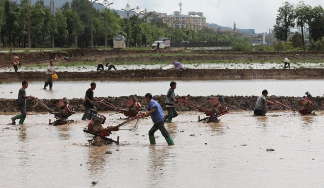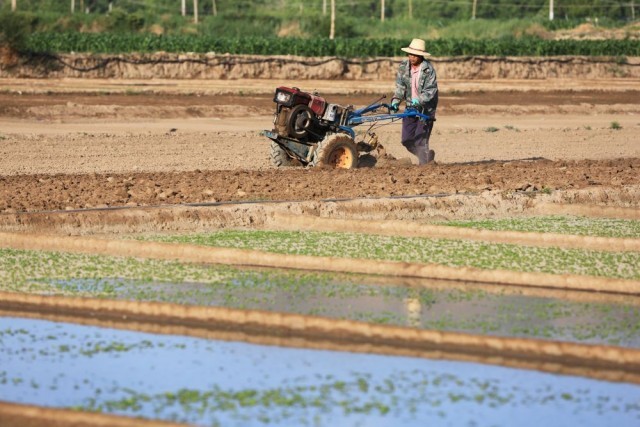 ↑6月16日,在云南省腾冲市西源街道的农田里,农户操作微耕机犁田,为插秧做准备。新华社发(龚祖金摄)