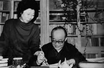 乔羽与妻子佟琦,也是执子之手与子偕老的一段佳话。1953年,乔羽在同事介绍下与比自己小10岁的佟琦相识相爱。两人的身份地位却十分悬殊,不被看好。佟琦是名门望族出身,父亲是东北的将军,母亲是清朝皇室后裔,如果在以前她本人算得上是格格。乔羽的祖父虽是清朝的秀才,但是父亲在他年幼时去世,他的家境因为时局动荡早已衰败。甚至有人对乔羽说:“你娶个‘格格’回家,以后看你怎么侍候!”