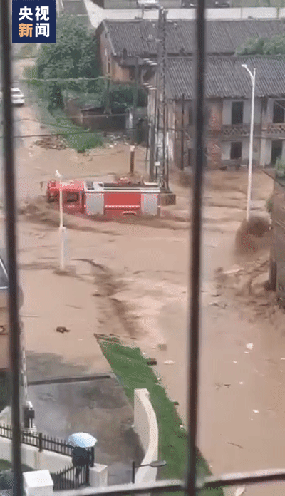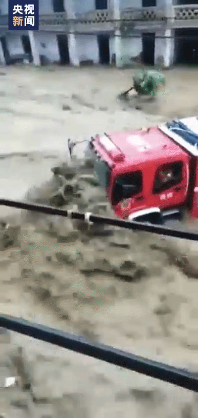 消防车救援时突遇山洪