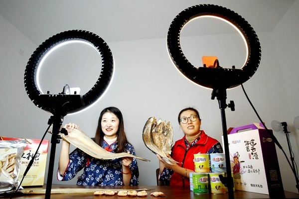 渔嫂们直播带货,渔村经济迎来新增长。朱华南摄