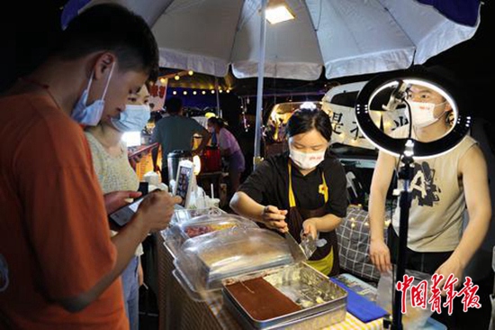 只要蹭上网红夜市的流量热度,做什么生意都能大卖吗?中青报·中青网记者连续几天在阳峰路夜市街走访发现,有的摊点前人山人海,有的摊点却无人问津。即便是经营成本很低的地摊创业,也并非随随便便就能赚钱。