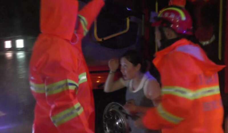 暴雨中被困车中的孕妇被成功转移至安全地带。山东省消防救援总队供图