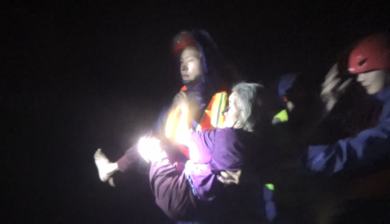 随后,救援人员又利用皮划艇在村中搜索,经过3小时的紧急救援,共将14名被困老人全部安全救出。