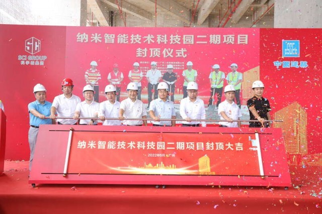 中国青年报客户端讯(吴立富 中青报·中青网记者 林洁)近日,随着最后一方混凝土顺利浇筑,纳米智能技术科技园二期项目工程主体结构,在中新广州知识城全面封顶,进入交付投产倒计时。