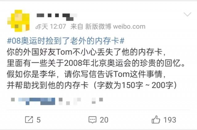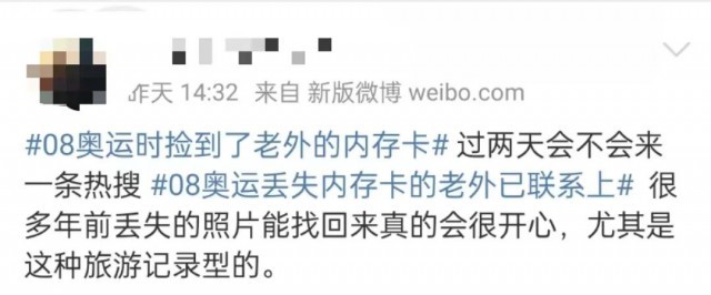 近日,微博热搜上有一位外国友人引发热议,有不少网友都希望可以找到这位外国人。截止7月14日16时,#08奥运时捡到了老外的内存卡#这个话题的阅读量已经有1.9亿次。