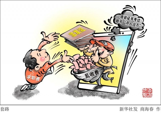 第三,画饼圈钱,培训“挂羊头卖狗肉”。有的机构没有任何职业培训资质,却大肆宣传,招生考取各种专业证书,串谋组织假培训、编造假申报材料,勾结实施假考试。有的机构还“画大饼”,宣称成功考证后,还提供证书挂靠、单位兼职等后续服务,一环扣一环,引诱购买升级服务。