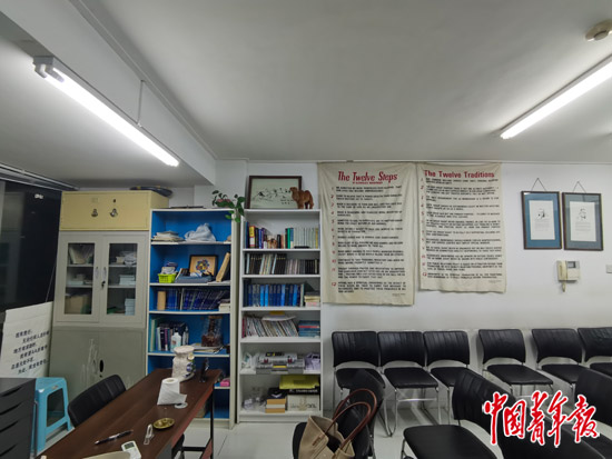 北大六院的医生李冰在2000年把这一模式带回中国,让患者在互相交流、互相鼓励中保持清醒。新冠肺炎疫情发生前,北大六院、安定医院和回龙观医院都设有A.A.分会场。医生发现,数名曾反复住院又多次复发的酒依赖者,通过定期参加A.A.会议和与自己的结对互助对象随时交流,能够保持多年滴酒不沾,病房内因禁止饮酒发生的医患争执也明显减少。