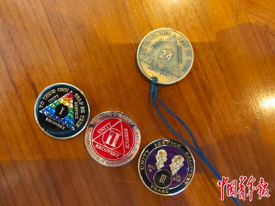 A.A.会员戒酒年份纪念牌。 焦晶娴/摄