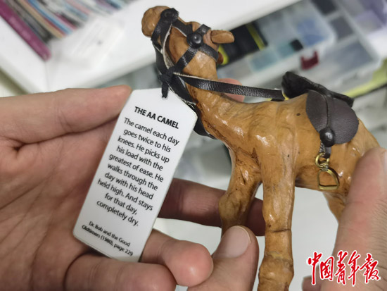 位于北京元嘉国际公寓517室的一个A.A.会场只有三四十平方米,一排排椅子面对落地窗外的绿树红墙。这里有饮料、糖果、学习资料,还有骆驼玩偶,据说骆驼能一天什么都不喝。很多会员第一次踏进门,看见几个大老爷们儿围着打扑克、下象棋,会怀疑来错了地方。开会也没人正襟危坐,有人玩手机游戏,有人闭着眼睛、翘着二郎腿。