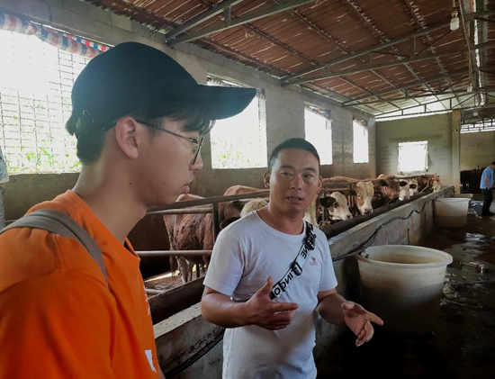 雷波县牛吃水专业养殖合作社社长给实践团队成员介绍养殖现状。