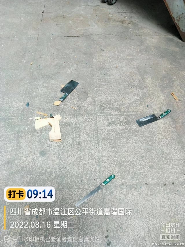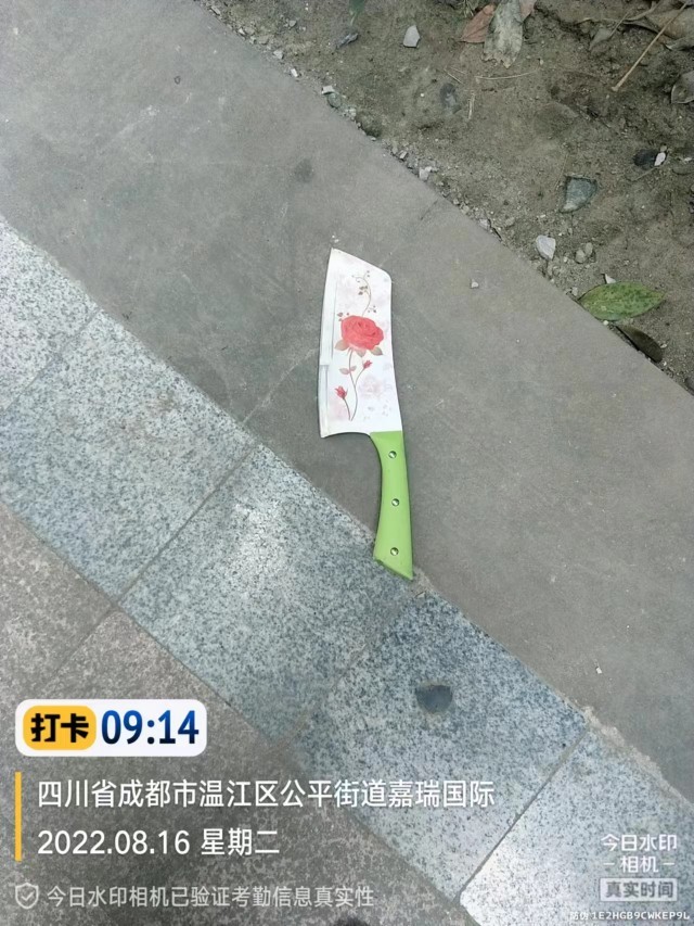 8月16日上午,成都温江嘉瑞国际小区有业主向澎湃新闻反映,在该小区5栋附近,四把菜刀及一个木质菜刀架突然从高处坠落到地上,所幸未造成人员受伤。小区物业中心工作人员证实此事属实,“物业相关负责人正在派出所处理这件事。”