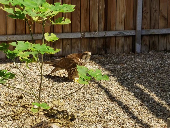北京猛禽救助中心的笼舍里,一只猎隼正在恢复健康。