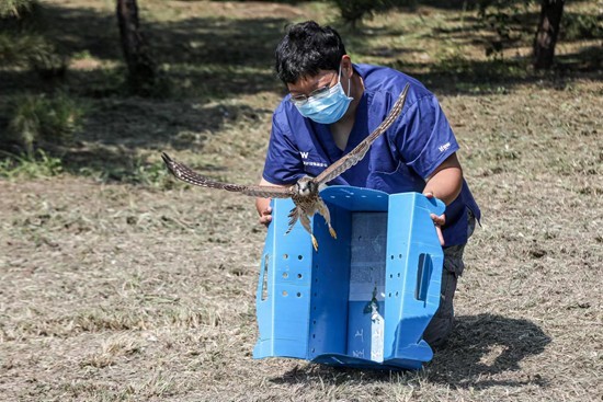 周蕾清楚,一切治疗的最终目的是让猛禽重回蓝天。从2001年至今,北京猛禽救助中心接救39种、5607只猛禽,放飞了3056只,平均放飞率54.5%。