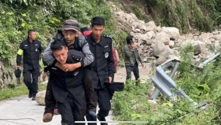 确认被困人员安全后,6日下午,25名队员经过艰难跋涉,抵达三号营地。这里被困的有100余人,是游客、景区工作人员和中科院科研人员。当时,不少游客情绪较为激动,有游客想要自己跑出去。特警们给他们分发了原本就不多的物资,并耐心做着安抚工作。同时,他们将手机里拍到的沿途受灾照片给游客们看,告诉大家自己走出去不现实,必须等待救援。
