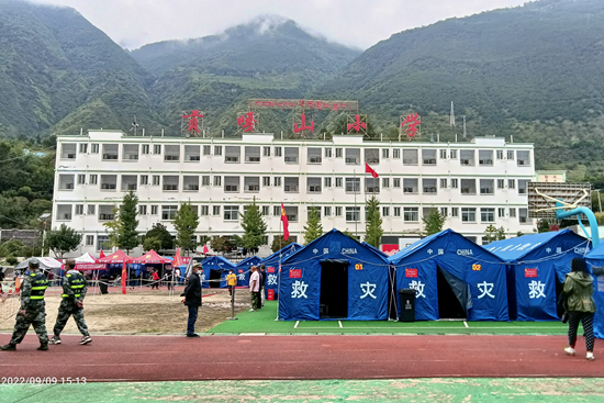 9月9日,四川泸定,贡嘎山小学安置点。 肖丽/摄