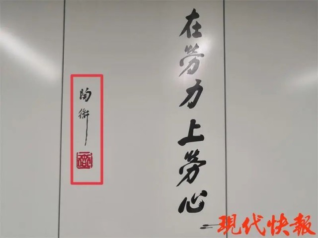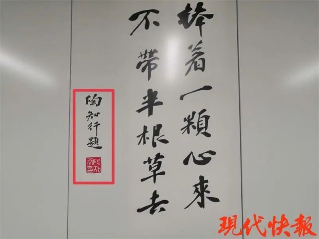 1月30日,现代快报记者来到地铁1号线晓庄地铁站,在2号口通道里,发现两面文化墙上共有10幅陶行知所题的作品。