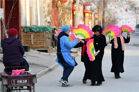 2023年1月22日,正月初一,石家庄一个村庄里,乡村医生偶遇村秧歌队排练。视觉中国供图