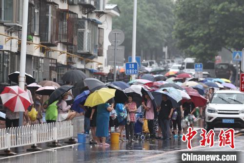 8月1日,北京市门头沟区,民众在街头等待供水车。此前,北京市门头沟地区受强降雨、山洪冲击等因素影响,门头沟城子水厂挡水墙被冲垮,影响门头沟区门城镇等地区约15万户正常供水。目前,北京市自来水集团通过使用补压井供水、与城区供水管线联通供水等方式,并调配45辆水车赶赴门头沟区,向停水地区进行应急供水。 中新社记者 盛佳鹏 摄