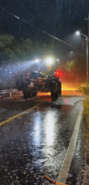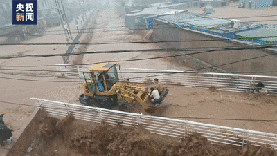 冒雨开铲车,逆流而上