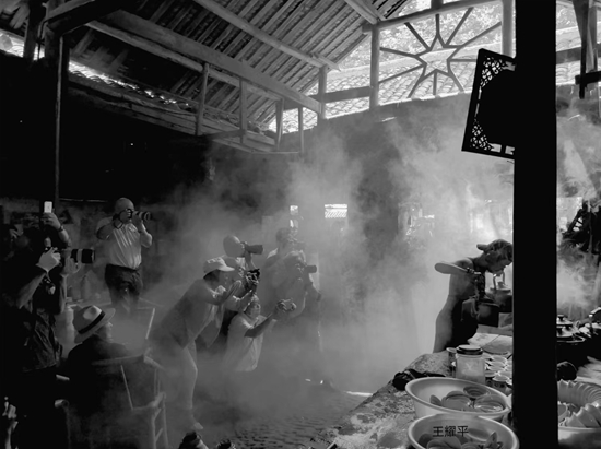摄影爱好者在烟雾中拍摄。王耀平/摄
