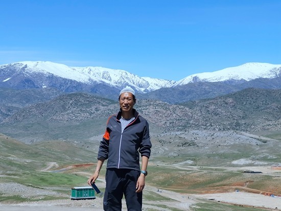 朱进在阿勒泰勘查观测地点。前不久他在运动时不小心受伤,头上固定伤口的纱布还未取下。詹想/摄