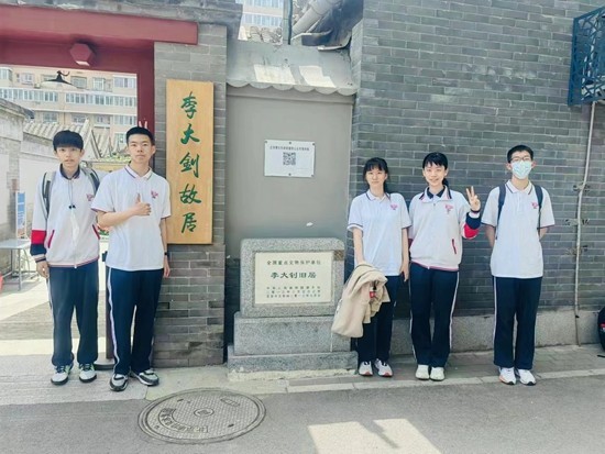北京市陈经纶中学高中部郎平一班志愿者在李大钊故居拍摄“云游北京名人故居”系列视频。