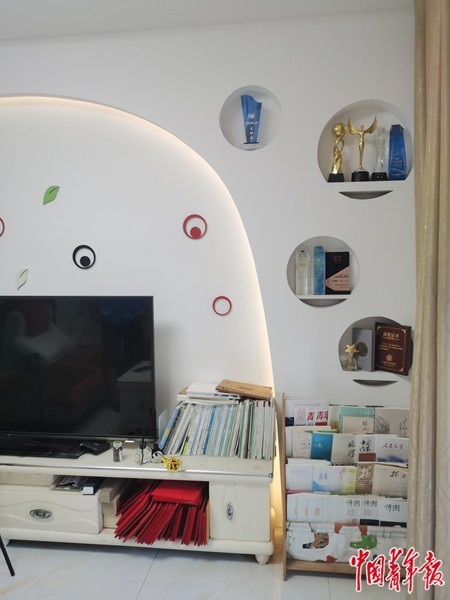 写作能挣来钱了,他越来越敢展示荣誉。客厅电视柜里、壁龛里摆满了奖杯、红色证书和刊物,他希望别人一进家就能看到。