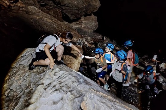 林奈实验室的老师带小朋友到溶洞看洞穴生态系统。本组图片由受访者提供