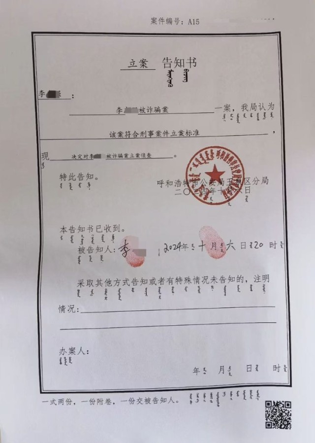 呼和浩特警方已立案调查。图片来源/受访者供图