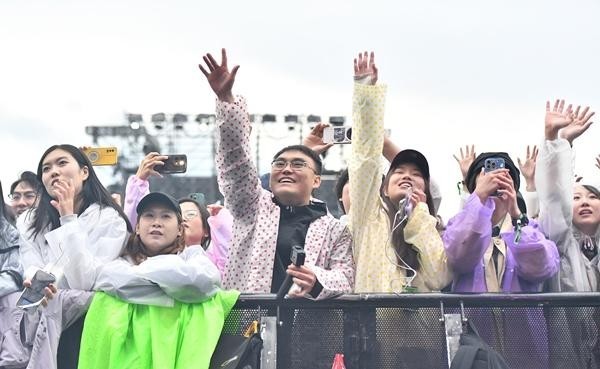 5月2日,观众在北京超级草莓音乐节现场观看演出。5月2日,2025北京超级草莓音乐节在北京世园公园飞行营地开幕。本次音乐节为期3天,共设有4个舞台、72个演出时段。 新华社记者 肖潇/摄