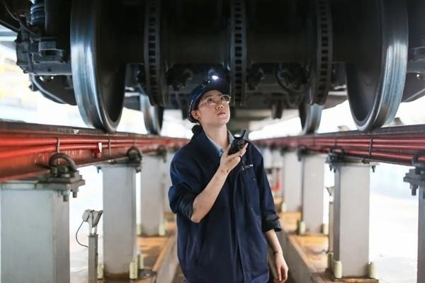 在检修坑道仰视检查车轮,是这群姑娘们要克服的一大难关。