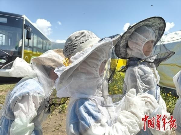 研学儿童穿戴防蜂服避免被蜇伤。中青报·中青网见习记者 李怡蒙/摄