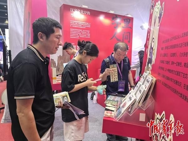 汉字IP“博物汉字”拥有300万粉丝,将甲骨文与AI技术的结合“玩出了花”。走入“博物汉字”展区可以看到,屏幕上各种拟人形态的甲骨文,蹦跳着演绎《西游记》《水浒传》等名著,书架上摆放着以甲骨文为“主角”的漫画和周边产品,吸引了不少年轻人的注意。